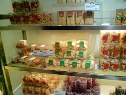 和小伙伴们在附近吃完了晚饭在附近逛街,看到慢城的招牌就忍不住集体拥进店里呢!大大的霓虹招牌特别吸引顾客的眼光,光亮通透的落地窗户让店内的每个地方都展现在大家的面前,入口处有简单的桌椅提供给客人就餐使用,超大的点心展示冰柜为蛋糕做了很好的保冷展示,随手选购特别方便哦! 店员说今天的饼干都是新鲜限定的,所以选购了一些饼干,首先给默默选了小小一颗颗的牛油曲奇,新鲜小麦粉搭配进口的天然牛油,吃起来的口感比较酥软,还有淡淡的牛油香味,特别适合小宝宝吃。推荐给各位妈咪。杏仁脆饼是买给姥姥吃的哒,底层的饼干里面充满了杏仁的坚果碎,饼干扎实又有营养,淡淡的杏仁香搭配饼干的脆好吃到飞起!上层的白色糖霜泡泡味道非常非常的杏仁儿,味道像是杏仁糖一样,香甜又爽脆!这糖霜泡泡虽然看起来平平无奇,但味道却无与伦比,这是姥姥很喜欢的小点心哦。推荐!出于对口味的好奇,给自己选了这款蔓越莓手工饼干,结果咧,选到了迄今为止吃到的最最最硬的手工饼干,饼干有着淡淡的麦香和鸡蛋的香气,其间充满足料的蔓越莓干,梅子干吃起来酸酸甜甜的,就是咬起来有点韧韧的,个人觉得这款饼干应该定义为磨牙棒!不太喜欢,不推荐!喜欢这里的自选式经营模式,店员的服务也特别的热情周到,会为客人主动推荐当日的新品饼干和特惠糕点,能让人非常迅速准确的找到喜欢的点心,真心赞!这里的环境没有那种非常匆忙的快餐店的感觉,而是让人感觉舒适温馨。关于卫生方面小白白发现了一些不太喜欢的小细节,陈列架上的灰尘看着让人觉得忧心,面包柜子的盖子会有一些油油的印记没有被及时清理,只有这一点不太喜欢,其他的一切都很完美,喜欢这里的手工饼干,喜欢这里温馨的感觉!32 …查看更多