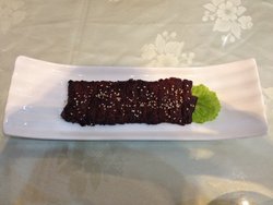 本来想点泰式鳕榆排的,被告知和糖醋紫香段是一个味道,于是决定选择DP上推荐的糖醋紫香段,没想到竟然是个错误。原来就是茄汁面筋的味道,而且这面筋绞在一起很厚实导致咬不动。。。这道菜我印象最深刻了,其他菜也没什么好吃的,但也没这道菜差。查看更多
