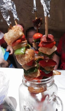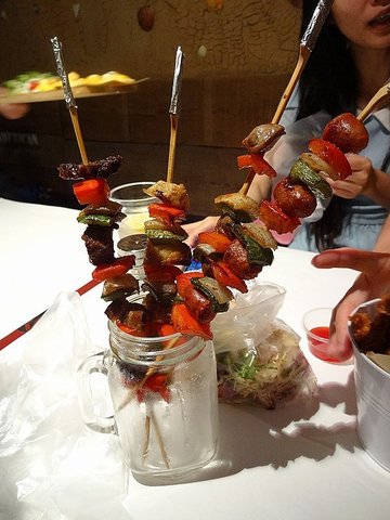 这个店的装修还可以,比较有气氛挺适合年轻人来吃的而且没有碗,都是用纸啊,塑料袋装上来的从科学的角度上来说,不是很健康咧看别人的推荐,点了个串烧长签上串着各式吃的,五颜六色的看起来蛮诱人吃了后觉得蛮咸的这家店也是要上点白开水,客服说没有非逼着你点饮料的节奏,这点不好吃一次尝尝就可以了…查看更多
