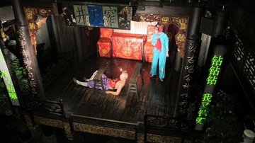 说实话,每次在成都映象门口走过,都要感叹一下,好久我也进去感受一下嘛原来帮单位订餐过来打探的价格最低都要200一位,如果没有人请我,自费是来不起的不过现在门槛降低好多哦,但也没有机会来,赶上全民517,玩转吃货节!居然秒杀到了趴活还是那么高端大气,连服务员都是美女帅哥些,养眼!7.30到,居然排位,哎,生意太好了等待中好惬意,听扬琴、听古筝、看川剧......水煮鱼 好大一盆盆哦,帅哥端上来吓我一跳,基本上除了辣椒、花椒,全是鱼片,满目的辣椒红亮养眼,配上唯一三片黄瓜片,可能是为了抬色加进去的,全是鱼嘎嘎分量很足,但味道稍稍淡一点,邻座的外地人觉得好辣,我们就觉得太淡,没有辣味,这儿就餐的外地人不少,可能有所偏淡吧担担面3份 说一两一碗,确实扎实啊,味道同样的可能照顾外地客人,都偏淡边就餐,边欣赏川剧,真的很享受哦两个人吃的很涨,还加油吃高达的餐厅,对待秒杀的,态度只好,我们都有点不好意思,不错,赞一个