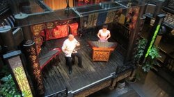 宽窄巷子里面大名鼎鼎的成都映象,一般都不得啥子机会来吃,一心就觉得这种地方是请客的,所以自己都不会过来。上个月朋友从重庆千里迢迢按过来,正好又住到宽巷子里面,那也正巧可以沾朋友的光切搞一哈成都映象了。不过我们中午来吃也算是过了吃饭的正点了,感觉两点钟才进来坐起。里面空位子大把,但是服务员都在忙到收桌子了。运气不错的是,还让我们遇上了讲评书的。环境真的没得说头,里面有一个好有情调的天井。菜品更没得说头,甜水面,味道不错,面的柔韧度刚刚好。虽然很小一份。椒麻鸡,不要看到没得啥子颜色,其实只麻,味道只重,好吃。开水白菜,吃到这道菜就想起蔡澜推荐喻家厨房的时候那段话了: “鸡、鸭、火腿大火之后,小火吊汤十二小时,然后清除杂质。先过滤,然后以鸡胸瘦肉打成茸,大火烧开汤,待生鸡茸煮成熟,吸掉浮油和沉淀。(注:这种方法,传统的法国洋葱汤也以蛋白来消除,异曲同工。) 如此反复二次。另厢,把白菜放进汤中烫熟,白菜去水,倒掉,再重复,至汤味进入,最后才摆入汤中的。”成都映象的开水白菜或许没那么多工序,但依然能吃出鸡汤味,依然能尝到鲜味。宫保鸡丁相当好吃,鸡的肉质也很好,嫩!最后买单三百多,是贵啊,没点几个菜,更能点大菜,就一顿便饭,但是在接受的范围内。