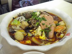 龙凤什锦,38块钱端上来一看原来就是丸子开会。不过分量还可以,一大盆2个人吃正好。丸子有很多种,鱼豆腐、鱼丸、包心牛丸、贡丸、脆皮豆腐等等,还有花菜、藕片、土豆、白菜、海带丝、莴笋等,丸子口感还行,不是那种面粉过多的口感。香香辣辣的很下饭