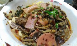 牛全福,38块,一大盆够2个人吃的,米饭2块钱一个人。牛全福,顾名思义,荤菜部分都是牛的,牛百叶,牛肉,牛筋等等, 分量还行,牛肉最好吃,入味又嫩 其他素菜种类很多,豆腐皮、莴笋、海带丝、大白菜、白茶干、粉条、土豆片等等 味道吧我总觉得还是差了一点点特色,香辣麻味都有,但还不够有特色