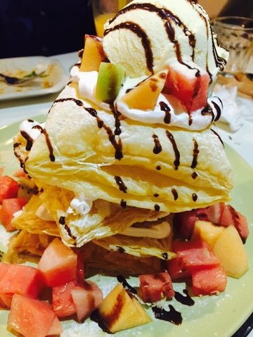 第二次来我家,进店铺后~~,很浓郁的榴莲味~~,爱到没朋友,店铺不算大,但是很温馨,晚上生意还挺好的,我和朋友找了的位置坐下,座位对面就是架子鼓和钢琴,太喜欢了,~必点品【现烤榴莲拿破仑】¥32, 端上来,我就好喜欢啊~第二次酥皮香脆可口~~配上榴莲,相当有口感,咬下去,榴莲+奶油+酥皮太满足了,大爱啊~~简直太喜欢了,特别是榴莲味相当浓郁~~追加1份,【液氮冰激凌-榴莲味】¥38,服务员现场制作,烟雾太梦幻了~~犹如仙境,太喜欢了,榴莲味,相当浓郁~~,相当有口感~吃到冰淇淋的同事也有榴莲肉~~~对于我们这些榴莲控,简直大爱啊~~【榴莲肉松意大利面】,真的是对榴莲难以控制,小伙伴点了个这个,哈哈,上面铺上肉松,搅拌均匀后,意大利面与榴莲的完美结合,面煮的Q弹,带劲,棒棒哒,恨不得自己多一个胃,简直是停不下来的节奏。【招牌鲜果蜜糖吐司】 五颜六色的水果,有西瓜,猕猴桃,哈密瓜等水果,看到都巴士,吐司切成块,烤的香脆可口,裹着冰淇淋吃,巴士惨了。【重口味榴莲披萨】真的要不要全是榴莲宴啊,哈哈,真爱啊,披萨边还多香脆的,榴莲味浓郁,【牛魔汤面】好大一碗,感觉有点像烩面的感觉,只是面是乌冬面,汤还是多好喝的鲜美,【花生巧克力冰淇淋】个人很喜欢这个,花生和巧克力都很浓郁,但是又不腻,吃了好几口,棒,菜品丰富,各种美食,吃到停不下来的节奏,坏境还不错,适合约上几个小伙伴,一起来我家,聊天,吃甜品,是个不错的地方,服务态度也还可以,现在都很怀恋它家的【液氮冰激凌】。…查看更多