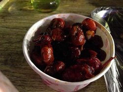 户部巷给人感觉就是早点一条街,实际上晚上去那里吃宵夜也是超级不错的选择呢。今天就说说上次我们吃的户部巷宵夜吧。户部巷一到晚上7点左右就是另外一番景象了,宵夜铺撑起一盏盏灯泡,架起简易折叠桌和塑料凳,露天大排档就搭起来。虾子、烤生蚝、牛蛙和面筋、炒螺丝、羊肉串什么的应有尽有。我们点了蒜蓉扇贝、牛蛙、螺丝和烧虾球,外加冰啤酒,绝美的宵夜很快就要开始了。扇贝是用炉火烘烤的,刚端来细听还有油滋滋作响,加了很多蒜蓉浓郁的蒜香扑鼻而来。扇贝里面的肉不大,加了粉丝后才显得贝壳比较丰满,味道还可以,一点不辣反而有点咸,里面的贝壳肉质还蛮紧致,少数有点细沙。牛蛙超大一只呢,穿在大竹串上,上面撒了孜然辣椒粉各种作料,那个香味让人食指大动,牛蛙皮剥得很干净,蛙腿肉很厚实,每一口都是浓浓的烧烤味,味道非常好,刚入口很香后来辣劲上来就很辣了。炒螺丝,现在的螺丝已经蛮大一只了,里面的肉也够大,用辣椒爆炒后味道是相当的足,每一颗味道是又香又辣,里面的螺肉很有嚼劲,吃起来弹牙又开胃,这个螺丝很有些辣,吃几个后要歇歇。虾球,虾子去头去脚,烧的油汪汪红彤彤,味道还是那种又麻又辣,典型的大排档味道,里面的虾肉大小一般,洗的比较干净,虾线不容易取干净。这几样宵夜常见品种,味道都蛮可以,而且这里一到晚上人同样不少,好吃的铺前总是有大量的人在排队,想去吃还得有耐心啊。查看更多