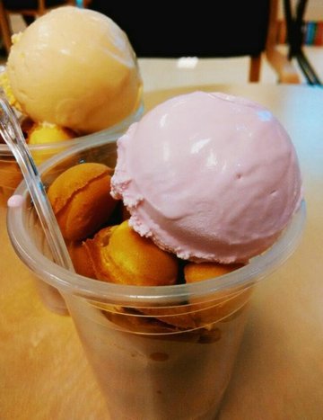 手作之店位于杨家坪西城天街UME影城的旁边,寻找比较方便。再好友的推荐下来这家店的。店内环境很Q。它家的冰激凌的特色是就是有一串鸡蛋仔在里面,外壳很酥,里面很绵软,味道很棒,冰激凌吃的是草莓味,有芒果味,蜜瓜味,香草味等等,冰激凌球也很给力,分量足!第一次吃到这样的搭配很美味!
