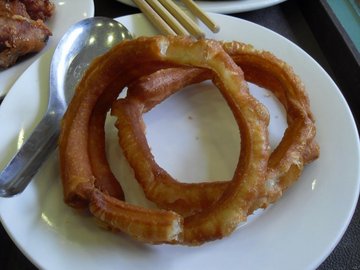 护国寺小吃店东四北大街214号, 东四。早晨的早点很丰富的,各种炸物,还有包子馅饼之类的呢,要了一个油饼、一个豆沙炸糕,价格不贵,都是新出炉的,很新鲜,而且豆沙炸糕里面的豆沙很甜,挺好吃的呢。