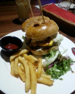 这家的环境很好,很休闲,就是贵,服务也是不错,味道很好的,尤其是汉堡最好吃了。BBQ牛肉汉堡,那个汉堡的肉很多,牛肉饼很嫩很香的,肉香十足,里面的芝士也很多,浓浓的味道,还搭配的一些薯条,新炸出来的很脆,鸡翅,是泰式的味道,酸甜口味的,味道很浓的,入味的都很好,鸡肉很香。肉酱面,那个面很劲道,肉酱放了很多的,肉酱的味道很浓,有番茄的味道,里面肉是牛肉粒的,很多。查看更多