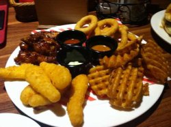 美式起司鸡肉脆饼:味道还可以,不过必须要趁热吃,量很足,两个人吃都没吃完。尼斯色拉:颜色丰富,种类很多,但味道稍显平淡。炸芒果条:没有芒果的味道,里面黏糊糊的不知道是什么,炸洋葱圈也不好吃。经典BBQ牛肉汉堡:性价比可不怎样啊!味道很美式,比起熟知的那两快餐店味道略胜一酬是必须地,但这个价钱就是太不美貌了点。波隆那肉酱意面查看更多