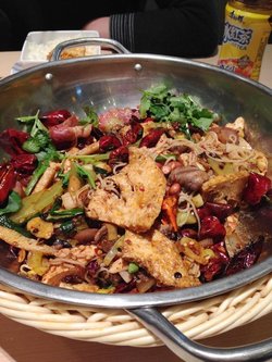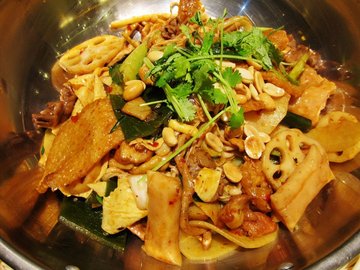 香锅嘛,就是有点干锅味道,麻辣的口味,一定要吃米饭哦。香锅的菜肴都是自己选的,不过有几样土豆和豆腐皮是必点的,有这些才叫香锅吗。荤菜吗,方火腿是好东西,一片一片的也便于入味。一口香锅,再吃一口米饭,这感觉真棒。…查看更多