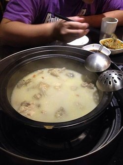 捞王锅里面最好吃的就是胡椒猪肚鸡了,基本上桌桌都会点的,汤真的很鲜,奶白色的汤底非常的诱人,里面的猪肚也好吃~汤的话还可以加哦,加的还是高汤哦!爆浆手打虾丸好灵的,虾丸很有弹性,非常的好吃,个头也很大哦!!人均一百多,真心的满意!!