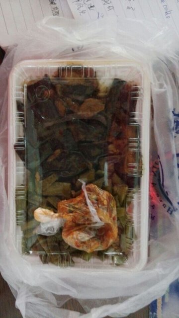 今天是素拼饭,10元一份,米饭可以任意加。素拼饭是烧茄子和烧芸豆的结合体,都是过油的菜有些油腻,但是食堂比较人性化的是每份配了个小咸菜(东北冬天每家必做的拌萝卜干)烧茄子:是我的最爱 百吃不腻,不过冬季的茄子皮很难吃 很硬,应该消掉以后才过油烧芸豆:很烂胡,炸过油的感觉。烧芸豆本身没有汤汁,不过烧茄子的汤汁还是很浓郁的,两者结构配上米饭,饭香和菜香相融合拌在一起吃非常的入味。搭配上萝卜干的咸菜也不会觉得很是油腻
