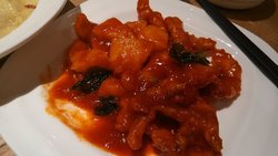店里的东西量很多,什么酸辣土豆丝,吃起来特别香而且比较辣,量足,稍微油腻了点,还有个手抓饼,吃起来其实是葱油饼的感觉啦,香香脆脆的,很松,而且才几元钱,量也不少啊,还有个菠萝里脊肉,菠萝好好吃哦,甜甜的很有汁水呢。