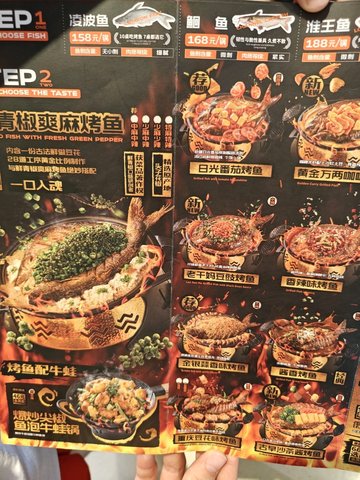 鲜青椒爽麻烤鱼 / 凌波鱼 / 红糖冰粉 / 重庆豆花烤鱼 / 酱香烤鱼 / 鸳鸯糍粑