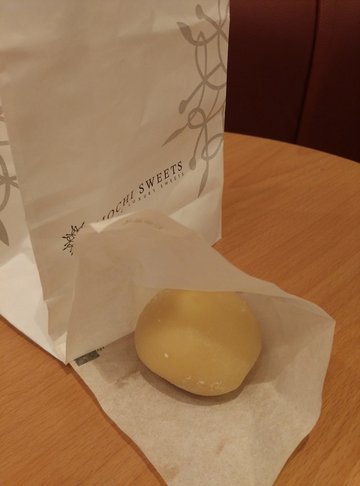 美罗城里的一个柜台,果子就是糯米做的各类甜点,选了芒果味的,当中的芒果内馅的芒果风味浓郁纯正。整体甜度正合适。果子的外皮软软的,有点粘牙。服务员态度很好,说常温放30分钟后再食用。