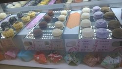 柜台很漂亮 就好象那些巧克力柜台一样摆着各种味道的摩提 可以买礼盒 也可以单卖一个抹茶的 巧克力的最好吃 樱花的也不错 但是味道偏淡一些如果买一盒要解冻一下 但它化掉又会拉升甜度查看更多