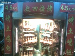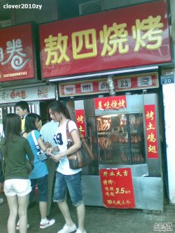 敖四烧烤~看大家的DP说他家有烤鸡腿~我每次往这边经过都忽略这一家了~于是买了一个鸡腿尝尝~鸡腿,5元/个~门面很小~不过店员MM服务很好~主动给我打包的~鸡腿不大,但是跟新奥尔良烤翅比起来,这个价格已经很划算啦~味道还行~不是纯粹的新奥尔良烤翅的味道~是淡淡的新奥尔良+孜然腌制的味道~还可以~鸡肉很嫩~不过要是纯粹的新奥尔良烤翅的味道,我会更喜欢的~哈哈~对于喜欢吃肉食的小盆友们而言,这个鸡腿绝对可以满足你们走在路上突然想吃肉的渴望~哈哈~查看更多
