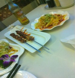 慕名特意来吃的,去二楼还是三楼?吃的。空调温度太不给力了,我自已动手去调了温度,没啥变化!真是热死了!点了羊肉串,拉皮,羊肉腿。都老好吃的!只顾着吃没有好好拍照啊!羊腿太给力了,吃了一个腿后就吃不下了,可惜了好多拉皮都没有吃。