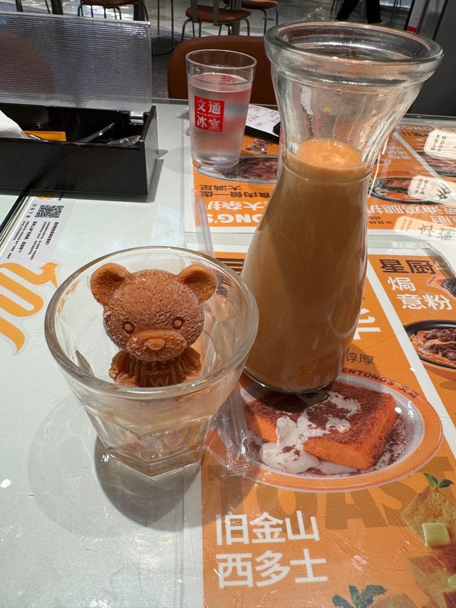 文通冰室有數間分店,其中一間位於領展中心城L1層,終於來到了,環境開陽,對着商場。服務員態度和藹有禮,點餐後,食物很快便送上。第一次來,當然要試一系列的小熊食品,有小熊冰冰奶茶、粉熊妹妹梳打冰冰、焗粟米和蕃茄焗豬扒芝士飯。小朋友一見到大的小的小熊冰粒,立即興奮到不得了,立刻要試一試,真的很可愛!焗粟米也真的很好吃,牛油味香濃,焗飯的芝士也非常足夠,豬扒也軟熟,而奶茶亦非常香滑香濃,好味,童心滿滿的一餐。…查看更多