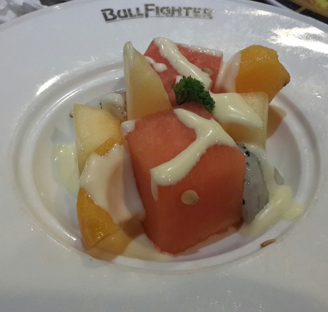 中午去的,环境很好的干净,点的是健康套餐,不带主食,其他东西畅吃畅饮。可选种类不多,计汤4款,面包2款,沙拉3款,甜点5款,咖啡3款,茶3款,和果汁4款;除菜单末尾的单点小食,面包:一份两片,好像都是刚烘过的,蛮喜欢他家的蒜香面包;奶油面包也值得一尝。沙拉:土豆沙拉偏甜,水果沙粒尚可,蔬菜沙拉普通。罗宋汤好吃的,料很多,甜品:布丁滑爽,红茶和蛋糕吃了两份。点套餐的话蛮合算的~~量足还是很饱肚子的,总的来说斗牛士环境和味道都不错。