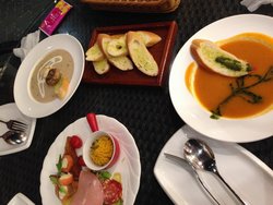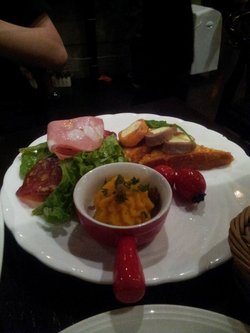 环球港的西餐厅,其实我不是很感冒,某人想去,那就去了这家。178团购的双人套餐,感觉还是有点贵,性价比其实一般啦。去的时候等位等了1小时啊,周六人好多,每家店都要等位。餐前蒜香面包组合:大概2种面包,6块左右。意大利前菜组合(包含: 蓝莓鸡肝配土司 , 南瓜泥, 意大利肉类组合, 豆类混合色拉):我觉得南瓜泥味道不错,吃上去感觉是土豆泥。浓虾汤:味道还行吧,上面有块面包。提拉米苏:还行吧口感,水分太多,没我做的好吃。查看更多