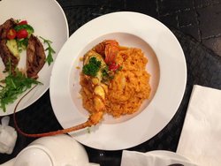 很喜欢这里的龙虾炖饭,吃上去龙虾质感很软,个头也很大,口感也是很嫩的感觉,饭粒也是相当的饱满。还有这里的奶油蘑菇汤也不错的,蘑菇的奶香味道也是相当的十足,味道也是奶油味道很足很丰富。查看更多
