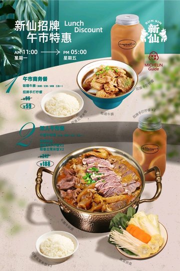 新仙牛腩煲 (米·城市新天地) (深圳) 网址: https://s.openrice.com/KtLS0W08FrN00 地址: 深圳宝安区宝安中心区宝兴路与金科路交汇处米·城市新天地1F层16号铺 电话: +86 17796364252