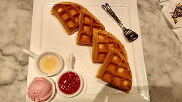 新杂志咖啡,是一家很适合吃下午茶的地方,打牌是最棒的。点一些茶点,再点壶茶。茶点点了一份华夫饼,华夫饼是热的,旁边配了炼乳、冰激凌和果酱。炼乳和果酱太甜了,不过华夫饼沾着冰激凌吃倒是非擦很难过的不错。