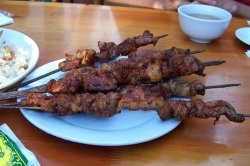来云南路吃火锅,每次都要点上几串正宗新疆烤羊肉,而且每次都要排会队才能买的到,他家的羊肉每人还限量销售的哦。小店靠近马路的转角处,门口放着烧烤炉用来烤羊肉,旁边还有一个桶专门让大家扔羊肉的木棒,木棒堆积的老高,可以说是一道独特的风景线了。先每人来了2串,羊肉一块一块都很大个,肥瘦相间,这样在烤时可以把肥肉里的油脂烤出来,香味扑鼻。吃上一口,感觉羊肉的肉质很紧实,还有孜然的香味,口味地道。但是他家的羊肉羊膻味比较厉害,不喜欢羊膻味的吃货们要三思咯。反正我是很喜欢吃啦。查看更多
