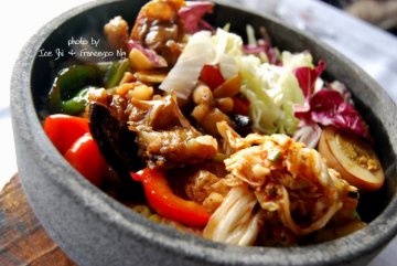 参加DP某活动抽到这家的券,一共150元,一看地址,傻眼了,这地都到闵行区和松江区的交界处了,不过本着吃货精神原则,探店还是必须的。。。券为100元一张和50元一张,券上了居然写了不能累计使用,不过DP工作人员说是可以的。。。这地方虽然遥远,不过过去还算方便,外环路地铁站,松莘线、松莘线B线随便挑一辆,上去到莘松路春九路站下旁边一点就是了,我们最后乘的B线。。。地方遥远,我们是中午过去的,实际到那里差不多已经下午了,比较英明,之前吃了点麦麦填饥。。。这家开在一个汽修店楼上,这块地方,估计也就做附近居民的生意了,旁边居民区比较多,店的性质其实跟那些个上岛、迪欧差不多的。。。店面比较大,不过大厅内客流很少,好像这里的包房更加畅销点吧,感觉都满了。。。这里嘛,主要是以简餐为主了,主食的话多数为套餐,会有些附加的小菜、汤什么的,我们2个人点2个主食吃吃也可以了。。。最后点了沙朗牛排套餐和石锅香辣牛蛙饭,这两样加起来也要一百四十几了。。。沙朗牛排套餐包括有自选汤、自选面包和自选咖啡,汤要了奶油蘑菇浓汤、面包为法式餐包、咖啡要了巴西风味咖啡,另外还有份脆绿生菜沙拉,沙朗牛排为200g的量。。。奶油蘑菇浓汤一般性,不够浓郁;法式餐包其实就是那种烘过的蒜香面包,比较脆;脆绿生菜沙拉里面有西瓜、生菜、小番茄等,色拉酱味道不错;巴西风味咖啡都归老婆的,据说味道不错;沙朗牛排看着比较薄的一块,量不是很大,味道也比较一般。。。石锅香辣牛蛙饭附赠有例汤和时蔬,这个石锅香辣牛蛙饭味道倒是非常棒,里面的量也丰富,而且很大一份,牛蛙辣辣的很好吃,饭居然用的还是蛋炒饭,比较特别,而且锅底的锅巴非常多,老婆吃得那叫一个爽;例汤为鱼丸汤,味道还行吧,时蔬就是拌黄瓜。。。不远千里,吃到一个很不错的石锅香辣牛蛙饭,也算是满足了,不虚此行。。。