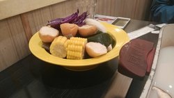 情调非常好的新辣道,还没出团购的时候就去尝试了,味道如其名非常的辣,是我吃过最辣的火锅了。貌似红汤梭边鱼锅底梭边鱼是最辣的一款,类似鸳鸯锅,清汤和辣味两边都可以刷。梭边鱼的刺很大,所以很容易剥开,鱼肉非常鲜美而且肉质细腻。再配上双人自助蔬菜自助,藕片各种蔬菜木耳完全无限自取。饭后还有冰淇淋供应,感觉很像海底捞。