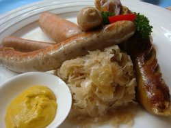 施纳德啤酒坊西餐厅特别适合夏天到这里来吃,喝着德国的鲜啤,吃着猪肘西式大餐,坐在宜人就餐环境里,真是和大棚里喝啤酒吃羊肉串是两个味道两种感觉。德式香肠应该是羊肉香肠,一点儿膻气都没有,因为有黄油和胡椒粉的掺入,吃的时候不说或不仔细吃可能都吃不出是羊肉制作的,经过烤制以后肠外皮略有一些油,但是外焦里嫩的香,配着一些德式酸菜又把香味提升了,半份6根香肠二个人吃足够。查看更多