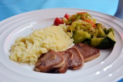 施纳德啤酒坊西餐厅看着挺雅致的,西式的装修风格,很温馨,价格适中,在这里吃下午茶蛮好的。炸猪排装盘精致,一份猪排,一小份沙拉。猪排炸的很酥脆,肉片很薄,吃着不油腻,肉很香,咸淡适中。沙拉吃着很爽口,简单的生菜,紫甘蓝,小番茄,颜色搭配的也很鲜艳。查看更多