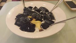 一家以黑糖为主题的甜品店,吃了黑糖冰,没想到却是很美味呢,完全没有想象中的甜腻口感,反而黑糖的甜度是淡淡的,据说用黑糖做甜品的话,甜品的卡路里会大大的降低,这样食客吃再多也不用担心会发胖呢,芋圆很Q,红豆也很软糯,可见这是一份营养元素均衡的甜品哦。