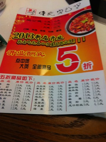 商场带餐饮特别多,平时因为逛街饿了,直接就会奔到商场楼上吃饭,无名小子重庆鸡公煲在大悦城B馆5楼。重庆鸡公煲上学的时候总去吃,这大悦城店刚开业就去过涮品5折,相当给力的折扣呢。当然去过好几次,周末上中午去的时候不用等位,晚上需要等位哦,每次2个人就点中煲,我朋友喜欢吃肉肉,我喜欢吃少肉的鸡肉。哈哈 配合灰常给力。继续说涮品,每次必点鲜蘑,大白菜,地瓜片,豆皮。店家的服务很不错,中煲基本上完,菜菜就立马端上来,对了有一次点了桂花肠这个不推荐,觉得就是香肠切了桂花肠的样子。环境还很好,也很干净的店。和好朋友2个人馋鸡公煲就去他家呢,划算性价比高哦。