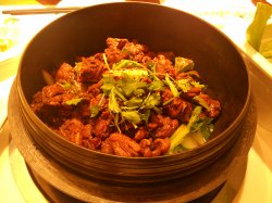 去中街大悦城的星美看电影,看完之后正好找个地方吃午饭,我跟朋友都是大爱鸡肉的,所以选了鸡公煲。大悦城B馆的五楼,就是麦当劳的那个馆,团购的双人套餐,70块钱一套。虽然写着是2到4人餐,不过现在的套餐都缩水 ,所以我和朋友核计也就是两个女生能吃饱吧。套餐的内容还可以,一个中煲,一盘肥牛,一盘鱼豆腐,一盘茼蒿,一盘金针菇,还有一盘木耳,一份拉面。中煲的量真不少,味道挺不错的,非常的入味,其他的菜品量也不小,两个女生根本吃不完,个人感觉加个米饭三个人完全够吃,美中不足的就是实在有点太咸了,下回再去吃应该让店家少放酱。…查看更多