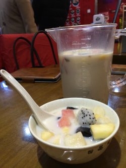 日昌餐馆挺不错的茶餐厅,环境简洁,小而温馨。菜价适中,量不是很大。西米露里面的配料挺多的,奶味浓郁,还有龟苓膏,西米,各种水果丁等,喝着清甜爽口,味道很不错。腊味煲仔饭闻着就很香,腊肠腊肉出了好多的油,米饭吃着很滑很润,一点都不油,咸香可口。查看更多