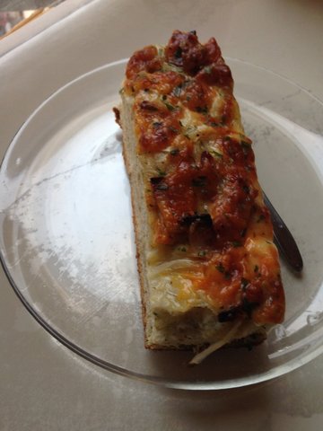 又是两款没有尝试过的新款面包。【香烤巧达芝士面包】10元这款面包看起来会觉得有点丑丑的,但是感觉是会很美味的那种。稍微有点矛盾长条形的面包,建议现烤出炉食用,或者第二天在烤箱稍微加热一下更好。因为冷掉的芝士和培根还有洋葱条会没有热时的香气。受热的芝士还会有粘连感,在口感和视觉上都会更优。这款面包还是不错,有点厚底披萨的感觉,只是个人觉得洋葱条多了点,如果换点别的会更好。下面的面包除了罗勒叶什么味道味道都没有,有点单调。【葡萄全麦吐司】2片 7元小亚觉得早安巴黎的吐司都没什么吸引力呢!我在那里选了好久都没拿定主意。最后选了这款看起来还可以的。很大一片比较厚实,但是吃起来的口感不怎么好,有点干。面撒的白面粉多了点,影响到吃吐司时的味道吐司基本上没味道,只有在咬到一口葡萄干的时候会有点甜味儿。吃完一片觉得该抹果酱吃才能愉悦的下咽。恩。。。 继续吃。。。。 …Read More
