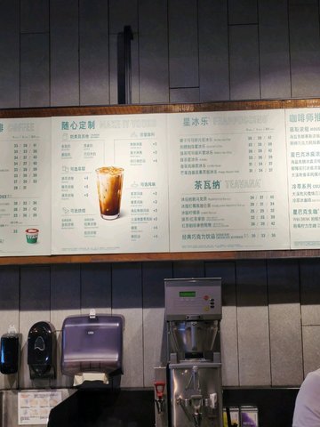周末,跟朋友来到星巴克。这里很安静,如此休闲的地方,约上三五知己来这闲聊,真是不错,这里叹下午茶的是不二选择。闻这咖啡的浓浓香味,品这美味的糕点,若喜欢安静,可带上一本书或笔记本电脑,这里提供免费无线网络。本人推荐这里的拿铁和抹茶星冰乐,抹茶星冰乐会比较甜,如果不喜欢太甜的话,可以让服务员少糖。