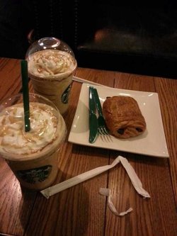 和朋友相约在星巴克碰面,两杯咖啡加上点心,一个下午就慢悠悠度过。这个点心丹麦酥味道和牛角包一样,主要是油酥层次多口感酥脆,里面夹着蓝莓果肉有点酸。个人认为丹麦酥还是刚出炉的最好吃,面包香浓的热气从酥皮气孔里溢出,面包酥松又有嚼劲。当然星巴克的还是比皇冠要好吃多了。焦糖摩卡星冰乐,这款正好是我俩都喜欢的,细滑的奶油伴着焦糖甜味味道特别好,下面的摩卡星冰乐喝起来又很甜又带着巧克力的香味,只能说好喝。唯一的问题就是这家店人实在太多,有点拥挤和嘈杂。查看更多