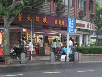 星火日夜在上海开的年头不少了,店里的环境感觉有点杂乱,他们家卖的东西还蛮多的,什么干货、糖果、各种的零食。我个人还是比较喜欢他们家做的的鲜肉月饼,刚出炉的鲜肉月饼味道最好了。这时的月饼皮香香的、酥酥的,里面的肉馅吃起来口感也比较的鲜嫩,买上几个当点心蛮不错的。…查看更多