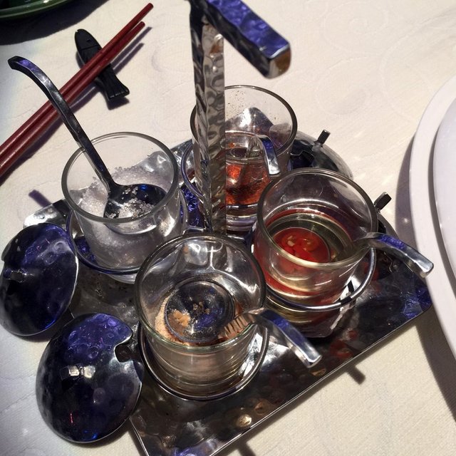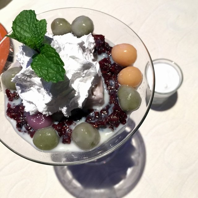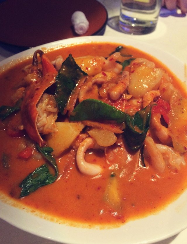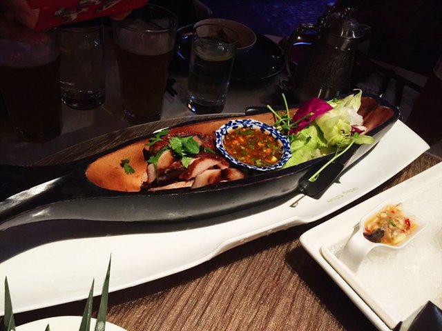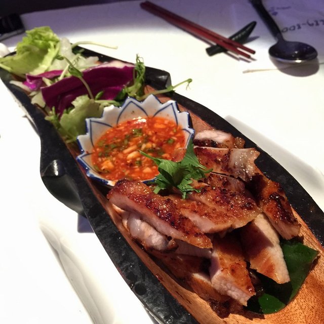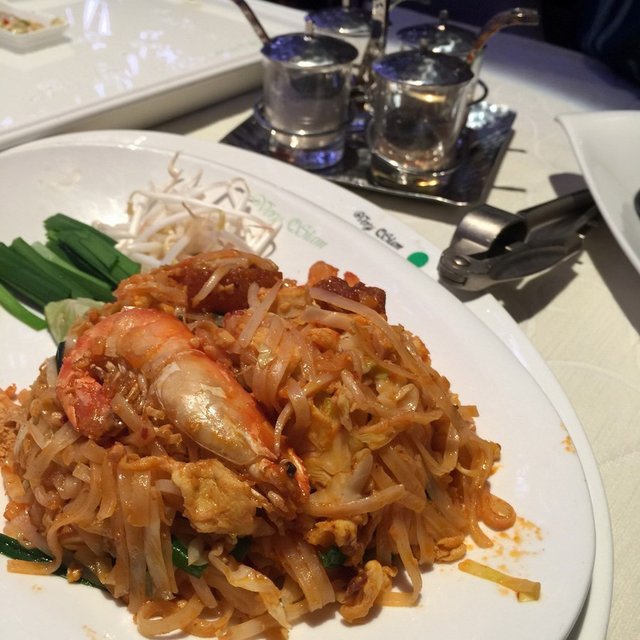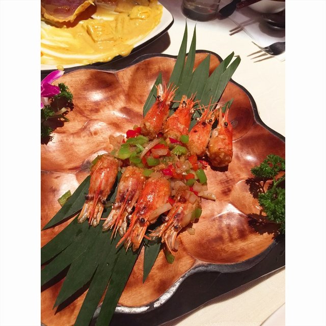 废话不多说直接进入正题,七点半到店,我提前一点就到了,在会展中心D出口,出口走出来有一个玻璃门,从玻璃门纸通往广场,直接走到底就是。店外面还有花园,还有露天的座位,走进店里,店里装修很泰国风,比如佛像什么的,走到我们那桌,看见圆桌子上摆着三个大西瓜雕花,人齐了之后经理开始介绍,说这是为了接待尊贵客人的礼仪,这个西瓜只能看(心里在想好浪费啊= =给我吃嘛)是大厨今天花了三个钟雕出来的。介绍完拍照之后就把西瓜撤了开始上饮料,有芒果汁、榴莲牛奶、水果茶、泰式奶茶,没人都不一样,= =没喝到想喝的。然后经理开始介绍香料,有青芒果,香茅(长的那个细细的)还有泰国香菜之类的,他那个姜我闻了一下很香,而不是刺鼻,有一种甜甜的味道。【金錢蝦餅 118】用一个船一样的器皿装着萝卜雕的可爱的小象端上来的,虾饼只有四块,等我们拍照完之后就段回去切了,然后再端上来,虾饼是酥软的,不像一般的虾饼是实实的,虾饼蘸着甜甜的酱,让我越吃越饿= =(不过回来看到虾饼118的价格我也是吓到了)【酸辣生虾 198】端上来的时候有几个虾头还在动,这道菜是生吃虾身,虾头是要拿回厨房炸一下再端上来的。平常都不怎么吃生的我,拿着生的虾身,倒吸一口冷气,还是吃下去了,没有想象中可怕,脆脆的,酸辣酸辣的,口感很滑,还不错。虾头炸了端上来,主要是吃虾膏。【香叶西米糕 29】【芒果糯米 29】【南瓜糕 29】【椰子糕】觉得都很好吃哈哈哈,【炭烤猪颈肉 88】分量比较少,不过很香,猪颈肉一直都是我的最爱,微甜,又有点韧性,烤的很到位。【菠蘿炒飯 116】一份饭可以分成五碗,炒饭里面有腰果,肉松,菠萝,服务员可以帮你拌匀然后分,想想自己还是第一次吃用菠萝装的炒饭呢哈哈哈。自己本来是讨厌吃肉松的人,不过拌匀之后和菠萝什么的一起吃,反而很香,没有很奇怪的感觉,虽然吃完很想再吃一碗可惜分量不够。谢谢暹罗泰食馆的招待,还有经理的热情,经理是泰国人,在北京学习了商务中文什么的,中文讲的挺溜的。觉得这家店还不错,可以请客户吃饭什么的。…查看更多