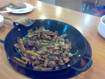 有口福——重口味 环境介于大排档同酒楼之间,所有价格上比较一般大众化,不算很贵也不算很便宜。服务人员的态度也很不错。环境这里比较干净简洁,而且吃的东西也算比较忠于几种主食材料——鸡鸭鱼。 这里的啫啫鸡,很不错,一大锅,上桌的时候就已经很香啦,而且还一边吃的一边抄着,越吃最后就越重口味噶,鸡是走地鸡,所有它们的肉质很有质感,很有弹性噶,而且吃起来皮上占的油脂很少,证明鸡确实运动量足够噶,再加上他们吃的也是素食,骨头也很清脆的,啃骨头的时候,骨髓都很清甜的感觉,加上他们这里的给予调料,让鸡肉发挥出更加美味的味道,吃的我们嘴巴都不停的咬啦。嘻嘻。 还有他们这里的饭也有一种很好的选择,还提供咖喱饭噶。哈哈,咖喱原本已经比较浓,与饭拌在一起,哇,确实只有吃上一口才知道口感啦,那种融化到口里,迟迟不能消除的,让你回味无穷噶。吃的过瘾之余,还可以吃的饱饱的。这里的美食就是一个词形容:“重口味”。 还有划算的是,他们这里满100送凉茶,这样的服务还不错嘛,也可以给予我们降火噶。…查看更多