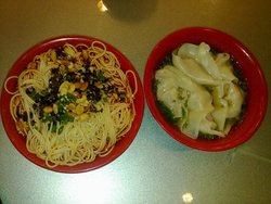 路过有家川菜,同学想吃就进去了,现在可以点个特价菜我们就点了五湖四海,味道还行,只要3块钱~点了馋嘴牛蛙,我觉得一般般,我喜欢吃更辣一点的吧,不过牛蛙还是满嫩的~点了香辣鱼头,吃多了有点油,而且端上来的时候下面的火横竖点不着,结果索性放弃了~点了担担面和龙抄手,不错,因为我们都饿过头了~酸梅汤一般性,没有其他川菜店的好喝~