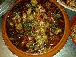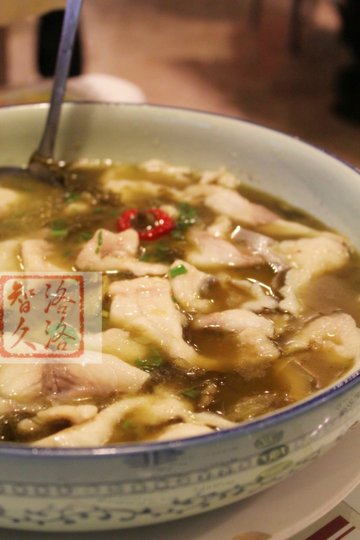 两个人也没点太多的菜肴,因为他们家菜的份量还是很实在的!点了一个麻辣鸭头,小份的,38元,一共有三只,因为有花椒的相伴,所以显得特别的入味,特别是刚刚端上桌的时候,鸭头的口感最好啦,皮酥肉嫩,还有饱满的肉汁,特别的麻辣入味!品尝后很是爽快,有些麻辣,当然就要点饮料了,他们家的酸梅汁很浓郁,特别的酸,蛮开胃的~小份的是38,大份的是68~两个人嘛点个小份的就足够了!想吃酸菜鱼,洛最爱吃鱼了嘛,他们家的酸菜鱼份量很大,一大盆,很张狂!鱼片切的大且厚实,而且不是一夹就碎,十分的鲜嫩,明显是很新鲜的鱼片,真真是大爱之,酸菜也入味,酸酸辣辣的很尽兴!虽然此时汤头稍许有些油腻,如若配上一碗米饭恰到好处了,可以吸吸其的油腻!推荐菜: 酸菜鱼 麻辣鸭头