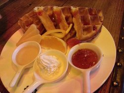 有璟阁的环境非常赞,其他的比价一般。松饼很大一盘,吃着酥香软糯,甜而不腻,有三种蘸料,其实原味的吃着味道就很不错了。咖啡种类繁多,拿铁香气比较浓,入口润润的,简单的咖啡配松饼吃着很惬意。查看更多