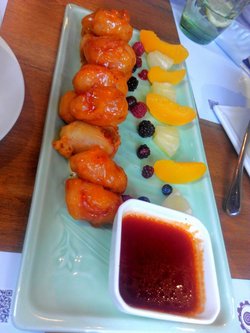 被性价比震惊了,尤其是下午茶买一赠一比麦当劳还便宜,大家赶紧去呀!有璟阁重新开业我是知道的,但是对我来说有点远,这次是一个老板请客。吃到中间让我们加菜的时候看了菜单,比之前真是便宜了不是一星半点,环境和服务却没有缩水,当时就想着要给大家推荐,就把水单要来了。(大家忽略没有素菜这件事吧,被老妈吐槽半天了,男老板请客肯定是冲着各种肉去的。)还是先从有璟阁家自豪的建筑说起吧,这个建筑是徽派建筑改建而成的二层小楼,木制结构为主体,辅以钢结构玻璃幕墙,装修比较复古,但是比如吧台灯光的部分又一口气现代化的密集了,开饭前别人都在研究木制雕刻,我在那儿研究了弱电怎么走线,汗,装修后遗症。落座之后先上了柠檬水。第一道菜,胡麻酱拌有机小番茄(28元),话说这几天算是吃番茄最好的时候,饱满多汁,过几天番茄里面就空了。外面的酱味道很淡,没有喧宾夺主。芝士焗杂菌(38元):典型西餐,第一道高热量的菜,吃一口就十分饱足。咕噜猪颈肉配菠萝(52元):典型的粤菜,咕噜肉外面勾糖醋芡,香脆略带酸甜,开胃可口。摆盘把菠萝和咕噜肉分开,添了树莓,让整个菜更有西方风情。酥皮焗牛肝菌春鸡(98元):招牌菜,几乎每个桌子上都点了这个菜,卖相是法餐里的酥皮汤特大号,所以里面可以焗起来一块一块的烤鸡肉,酥皮本身十分缠绵,手艺真心不错。深井烧鹅(65元):粤菜,烧鹅烤的特别均匀,皮油而不腻,配梅子酱正好。脆皮孜然羊里脊(56元):里面的肉特别细腻,而且没有羊膻味,虽然是炸过的菜但火候温和,调味也很赞。手打墨鱼胶酿油条(43元):原来在港丽吃过,也属于粤菜,虽然外表是油条但实际上是墨鱼做的,酥软弹香。非一般鲈鱼(43元):这道是我最喜欢的菜,鲈鱼绝对新鲜,特别清淡,汤和鱼肉都非常赞。饮料点了芒果苹果香蕉汁,火龙果昔,牛油果汁,薄荷苏打,就不一一介绍了,重复的也没有拍。然后是甜点时间,首先是特级缤纷厚多士(48元):依然是港丽风,面包皮硬而不焦,里面的蜂蜜完全烤化,加入的杏仁碎和巧克力碎一直到最下面还能吃到。后来店家介绍说发明这道菜的人目前正在有璟阁,算是吃到最正宗的啦!冰火菠萝油(24元):面包特别松软,菠萝包是温的,不过我就是喜欢温一点的,只要有口感的反差就足够了,那种烫的菠萝包我觉得反人类。。。按照人头赠了餐包,菜单上没有,据说满200元会赠送,啊啊越来越像在香港了,在香港餐包就是送的。给我们上了咸的叉烧包和甜的豆沙包。最后小结一下,这里环境好,服务好,价格是之前的三分之一,而且后面就是那个工体海洋馆的池子,里面开了莲花,装饰物既有古老的也有现代的。无论是放松还是商务都可以来这里,太赞了。查看更多
