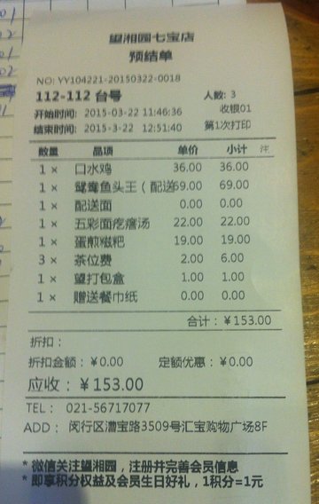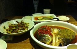 过年支付宝上戳小老鼠,意外中到它家20的红包,3月底过期,某个双休日中午带爸妈来这家店吃饭,点评上定的坐,支付宝扫码付的钱,总共153扣除20实际支付133,人均算是便宜哒,末了还把吃不完的鱼头带回家了呢。店面装修的可以的,地方不大,略吵,背景音乐大呀,午市生意好的。口水鸡,36,鸡很酥,爸妈都吃得动,垫底的是黄瓜,味道好的,不算辣,吃多了口感有点咸。五彩面疙瘩汤,22,超级好吃,番茄汤,入味的,加了豆腐,木耳,香菜,洋山芋,还有小小的面圪塔,超级喜欢的一道菜。鸳鸯鱼头王,选了69的,配了鸡蛋面,的确辣的,鱼头很大,一半辣椒,一半青的剁椒,味道也好的,吃多了也咸,鸡蛋面蘸了垫底的汤料超级好吃的。加点了蛋煎糍粑,19,当中是软软糯糯的糍粑,口感好的,两边配了鸡蛋饼,蘸芝麻粉吃的,入口很香,也不甜,原味的,蛮好的一道点心。么点饮料,喝的茶,茶位费:2元一人。用了免费的餐巾纸,洗手间在门外,走走有点路的。服务态度还蛮好的,微信上办了会员卡,说是可以积分的,生日还可以送券。…查看更多