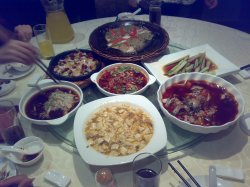 我是无辣不欢一族,我们一家四口都爱吃辣,外公爱吃,爸爸爱吃,妈妈爱吃,所以我也爱吃~~~点了大多数都是他家的招牌,让我娓娓道来吧~~~猪手,这个除我之外爸妈们吃得很很开心,我无缘享受这丰富的胶原蛋白了呀~~~不过,猪手看上去蛮Q的,连我外公也能咬得动哦,所以还是口感还是蛮嫩的哦~~~马坡豆腐后烧肉,应该是这个名吧,又是大大滴肥肉哦,我是个人原因不爱吃,但是外公和爸爸很喜欢的啊,我就吃里面的豆腐干,浓油赤酱烧得满入味的额,红烧肉的精肉也不错的~~~油爆虾,外公和妈妈又喜欢吃虾,所以点的额,这个算是中规中矩的~~~上汤娃娃菜,新鲜又爽口,蔬菜总是要必点一个的~~~招牌鱼头来啦,每回来望湘园这个也是必点的,一直觉得他家鱼头是真心赞,我个人更偏爱绿色的那一面,吃到后面再加面进去,味道真是赞得不得了~~~照片上还有一个汤,我名字真心忘记了,不过味道还可以,冬天喝汤汤水水的也很舒服~~~芒果汁一大扎,是真得新鲜水果鲜榨出来的~~~写得我口水都要流下来了都,呵呵~~~查看更多