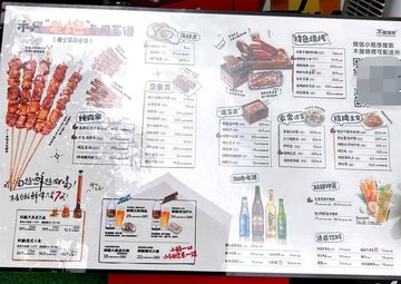 金牌羔羊肉串 / 木屋烤肥牛 / 烤生蚝 / 烤鸡软骨 / 香辣猪脚 / 烤土豆片